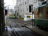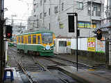 電車が右左折で分岐する交差点に設置されています。電車進行時のみ黄矢印が点灯します。