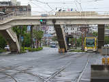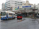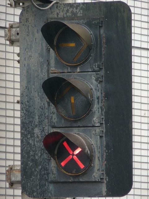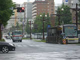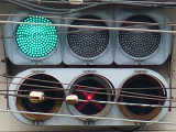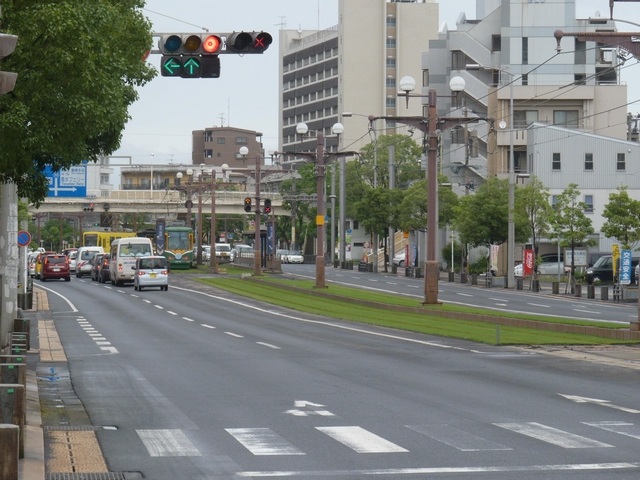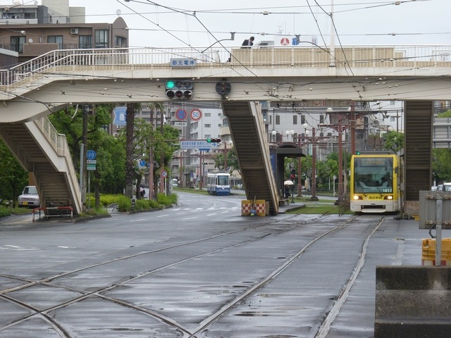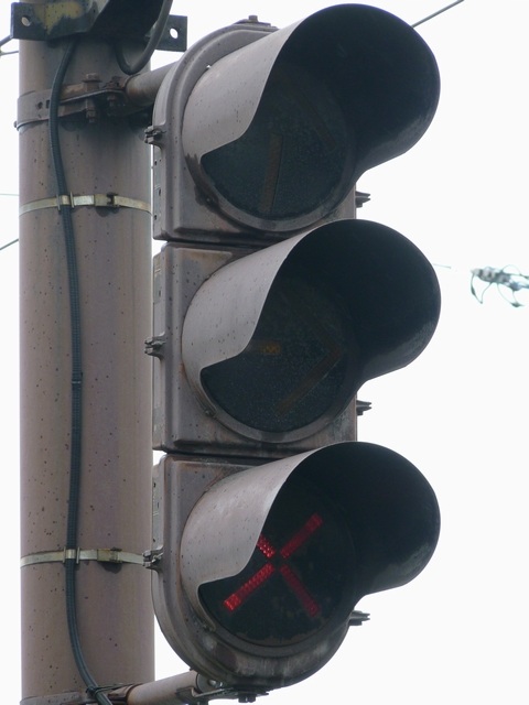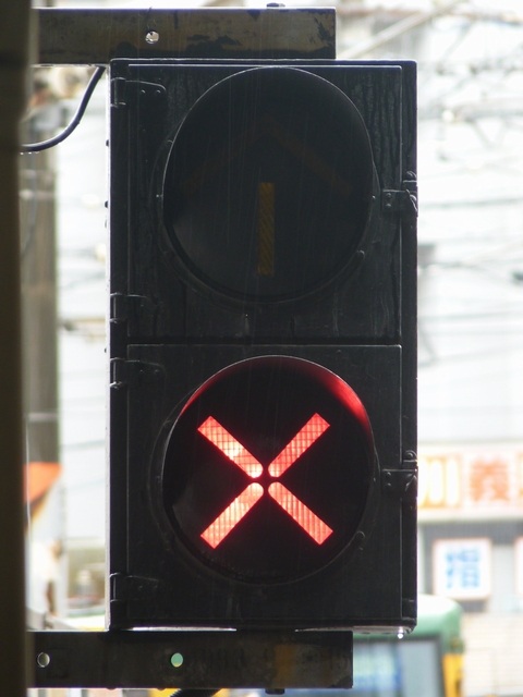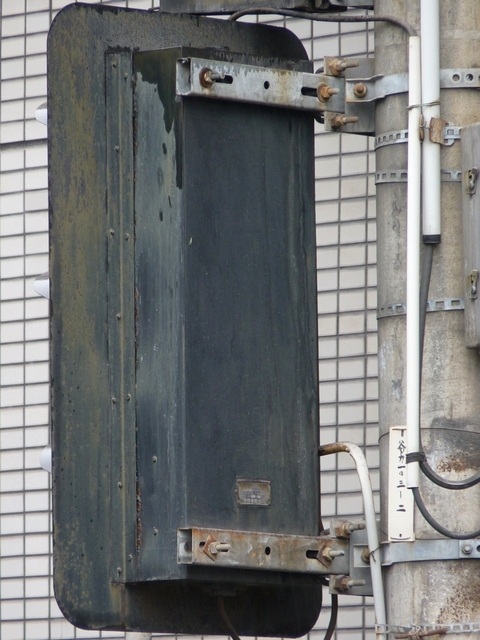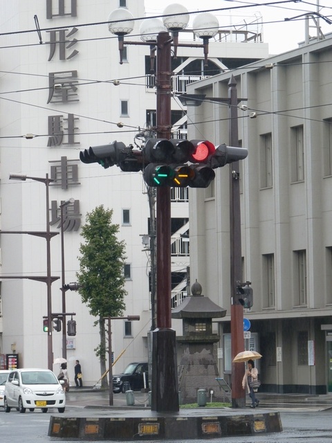 路面電車が右左折で分岐する交差点に設置されています。3色灯器と電車用の3位式矢印灯器が2段重ねで設置されていますが、それぞれ所有者が異なるためか、矢印灯器は古いままで更新されていません。