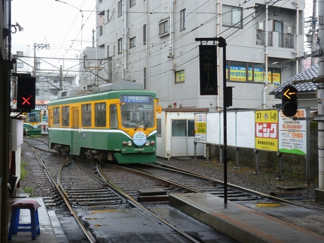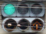 電停に設置されています。電車の接近に関わらず、電車が進行できる状態のときに黄矢印が点灯します。