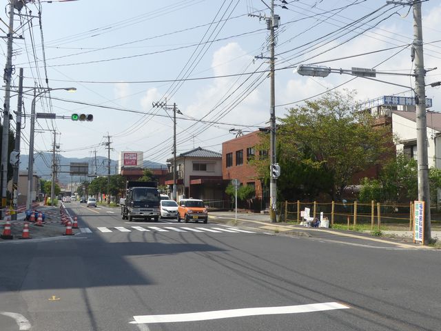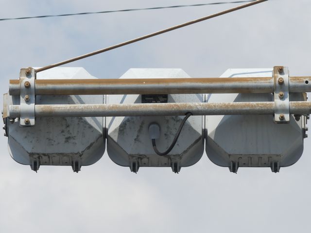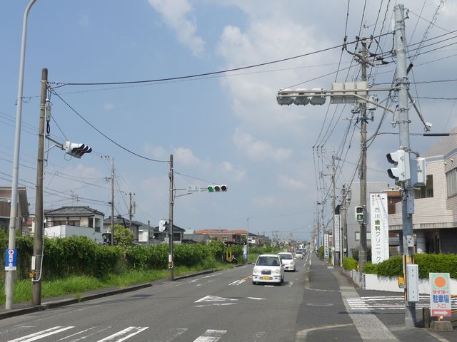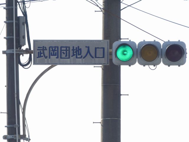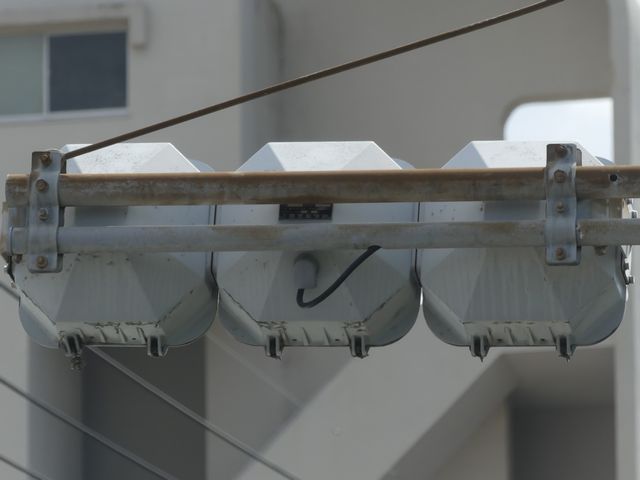 この交差点には1台設置されています。道路拡幅に伴う移設により、最新の平行アームで設置されています。