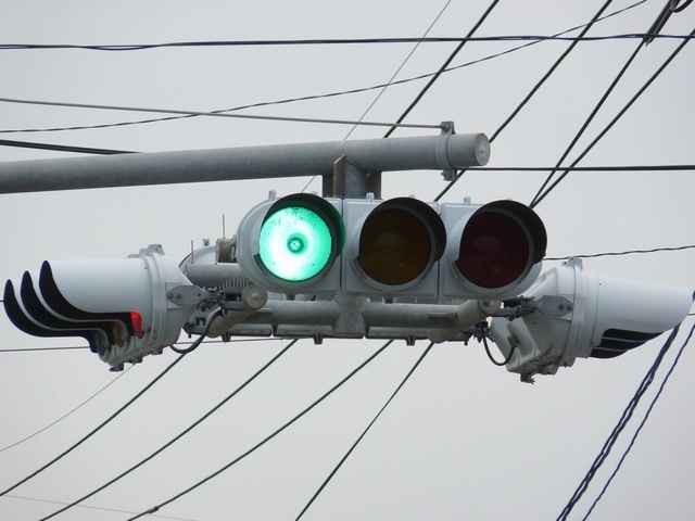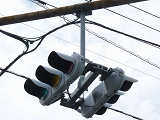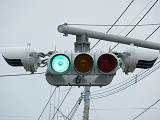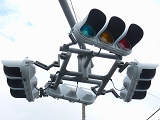 特に狭い交差点というわけではありませんが、4方向の車両用灯器が交差点中央に懸垂設置されています。