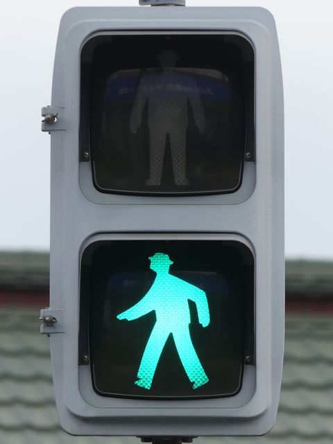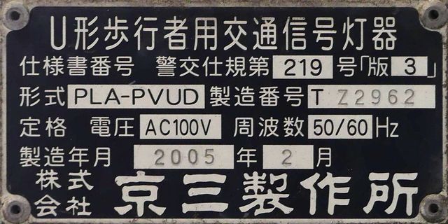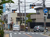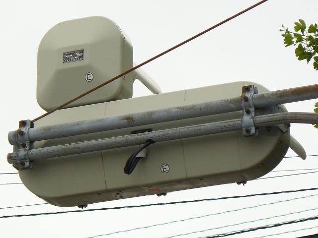 なお、信号サイクルの設定誤りか、この灯器と一緒に設置されている歩行者用灯器が青点滅の後、数秒間滅灯します(本来は赤信号のはず)。対面の歩行者用灯器は、正しく点灯します。