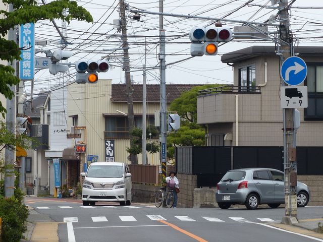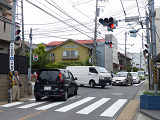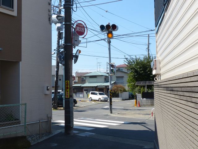 黄点滅側からの右折車が多いのに、対向車は赤点滅で(一時停止のうえ)ゆっくり交差点に進入してくるため、右折車の流れが悪く、さらに踏切にも近接しているため行楽期にはかなりの渋滞が発生します。