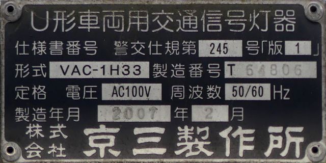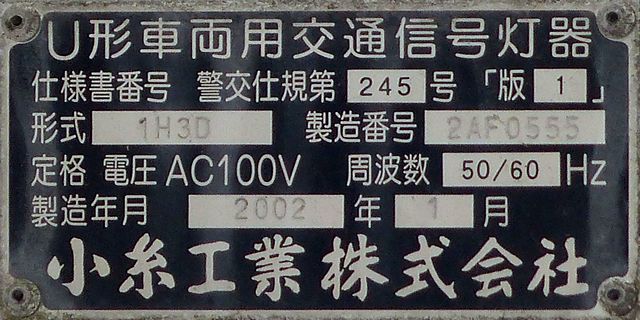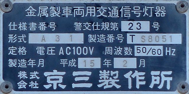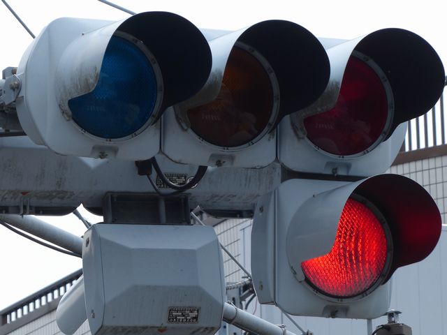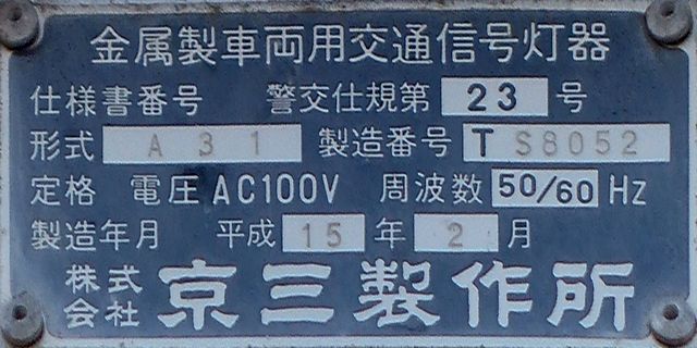 なぜか赤のみ蓋が分厚くなっています。また、一方の灯器は赤の光り方がかなり汚いです。レンズ表面は問題なさそうなので、内部に問題がありそうです。対向側の灯器は、列車通過時しか赤にならず、撮影時は列車が通過しなかったため赤の点灯状態は確認できませんでした。