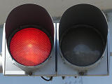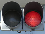 交差点対向側は青信号にならず、赤点滅で一時停止のうえ進行させます。赤点滅は3色灯器の下の1位式灯器を使用し、赤点灯は3色灯器を使用します。