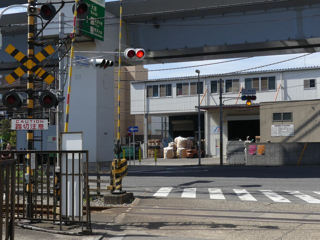 手前の踏切には赤・赤配列の2位式灯器を設置し、交差点の信号が黄点滅のときに、左赤点滅し、踏切での一時停止を怠らないようにしています。