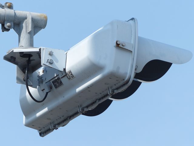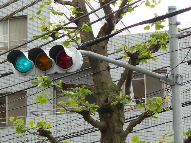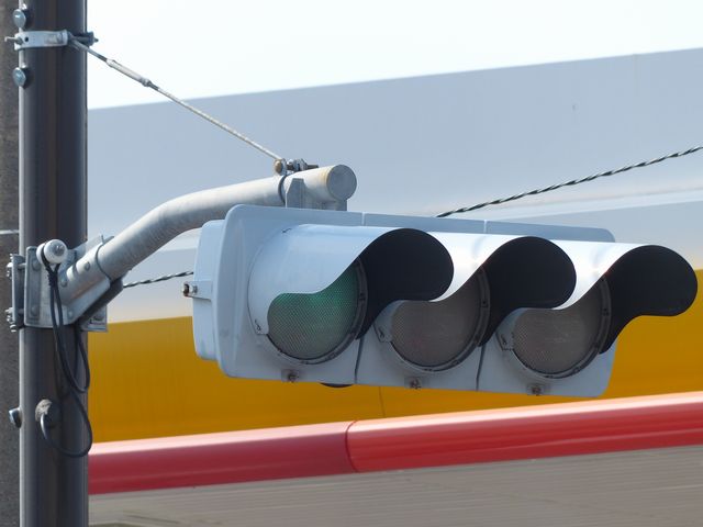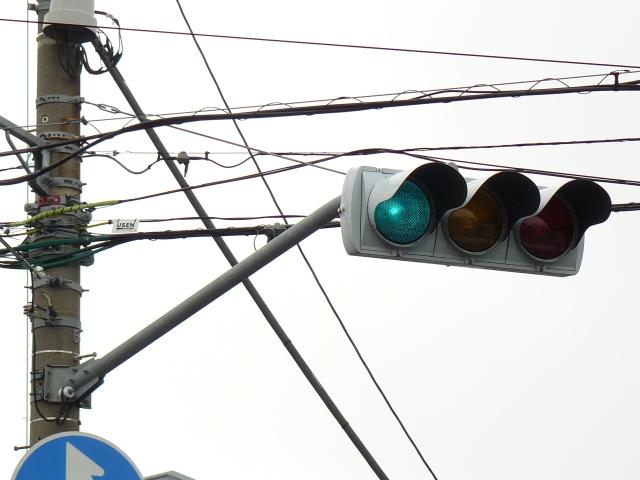 神奈川県では車両用灯器を信号柱から手前に突き出して設置する場合、1本アームで灯器背面に接続します。