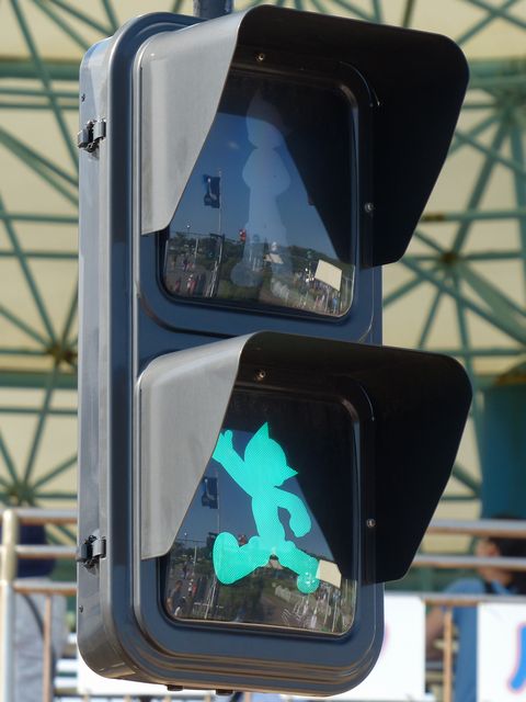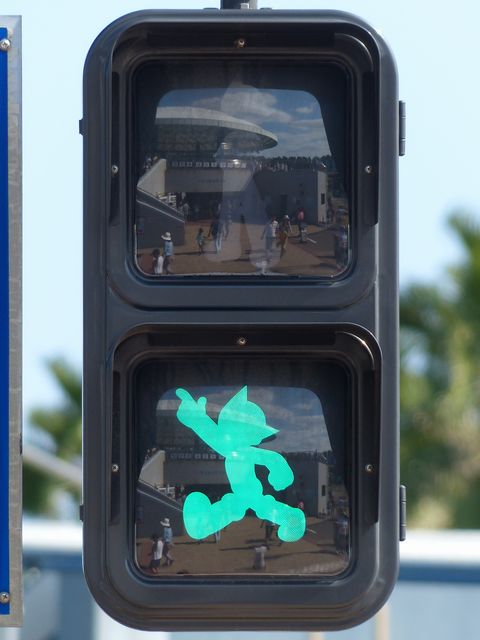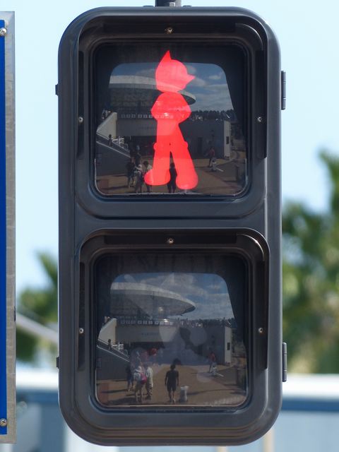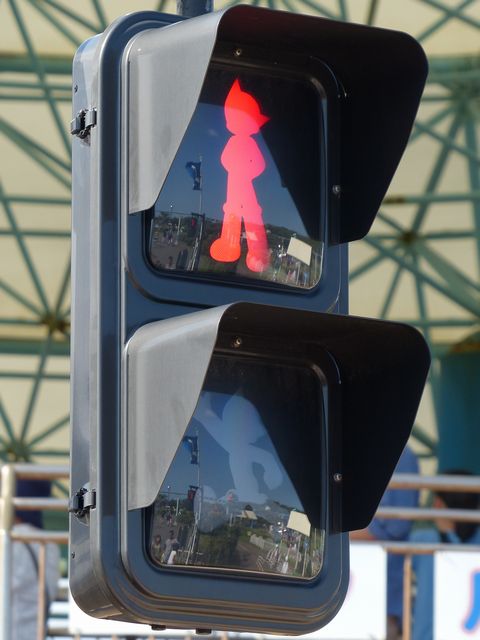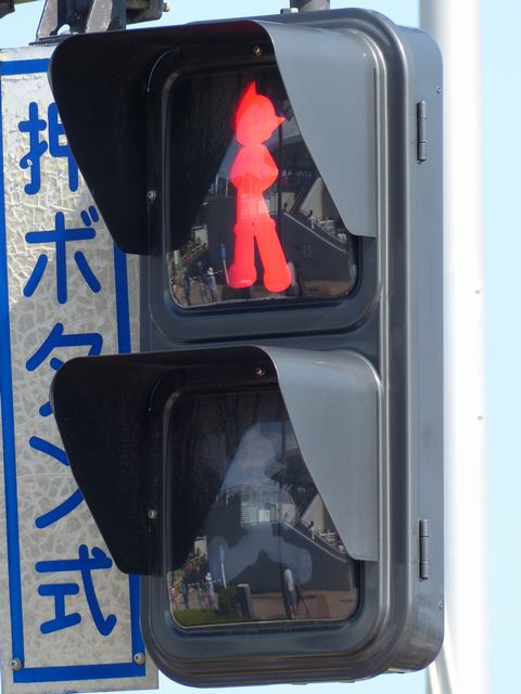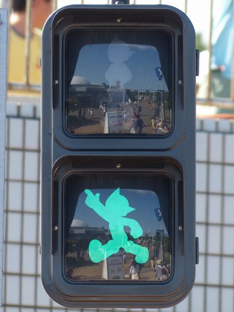 「さがみロボット産業特区」をアピールするため、2014年11月に神奈川県が設置した歩行者用灯器です。歩行者の記号が特区のイメージキャラクターである「鉄腕アトム」のシルエットになっています。県は設置場所を公開せず、ヒントのみを公開して探す楽しみを味わえる企画になっています。