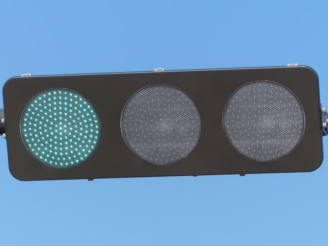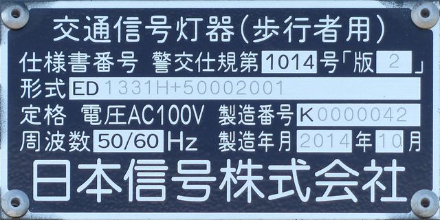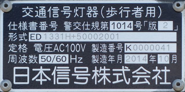 公道に設置される信号機は、規格が決まっているため、鉄腕アトム信号機のような特殊な歩行者用灯器は、公道に設置することはできません。設置されているのはある施設内にある押ボタン式信号の横断歩道です。車両用灯器は、フラット型灯器が設置(2015年度更新)されています。