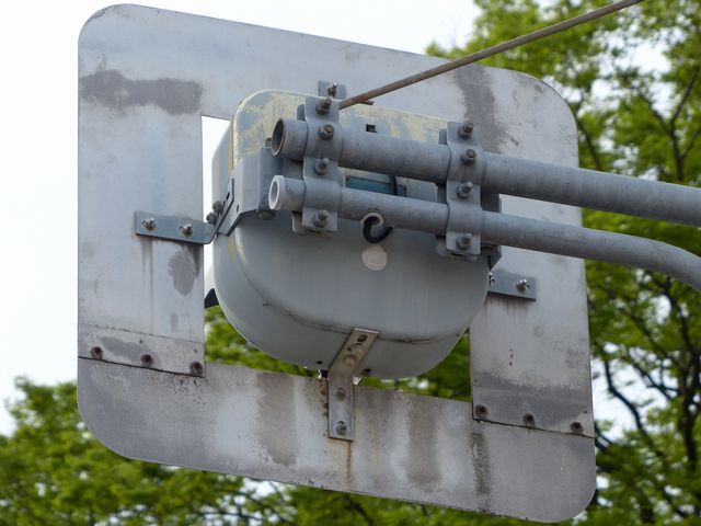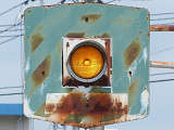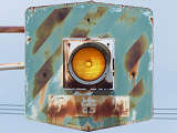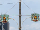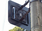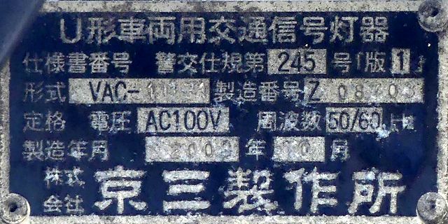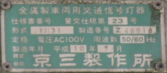 6角形背面板を装着した1位式の角型灯器を使用した予告信号です。銘板はありませんが、京三製と思われます。6角形背面板を装着した角型灯器というだけでも大変貴重でしたが、合流直後の信号交差点の予告であるため、2基並んで設置されていました。