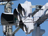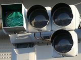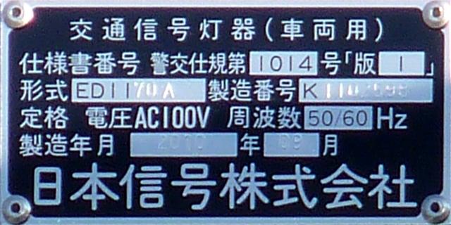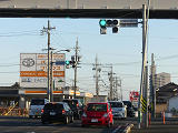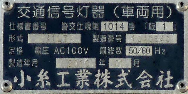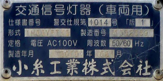 約120m手前に信号交差点があるので、誤認防止のために青のみ制限フードを装着していたようですが、灯火が見えにくかったのかルーバーが取り除かれ、枠のみになっています。あるいは、後からルーバーを追加できるように、初めから枠のみだったのでしょうか?