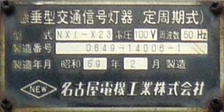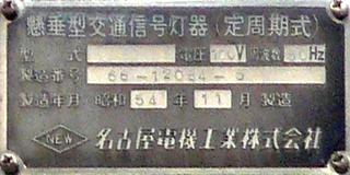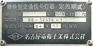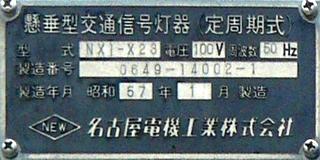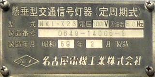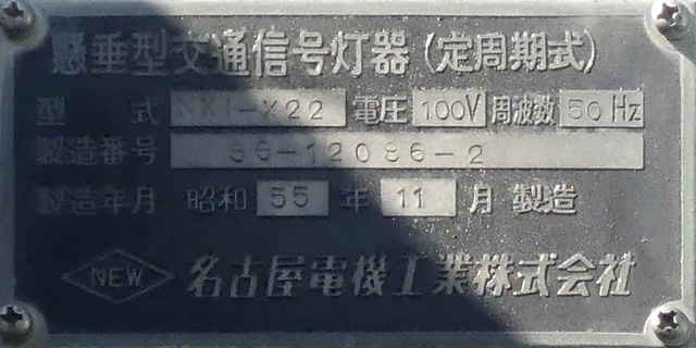 太白区長町のものは、3か所のうちで最後となる7/25夜に撤去されました。 懸垂型交通信号灯器(定周期式) 型式:NXI-X22 製造番号:66-12086-3 昭和55年11月製造 名古屋電機工業