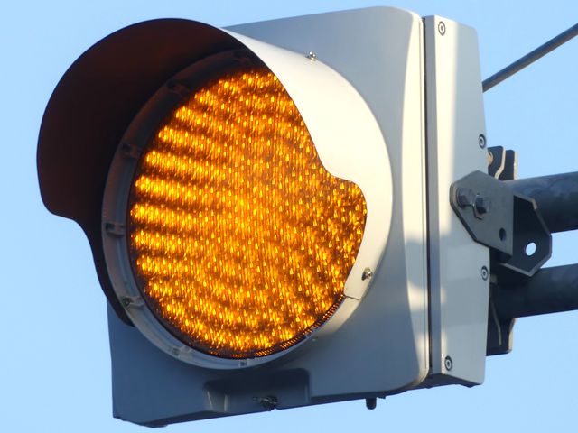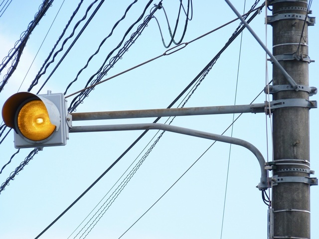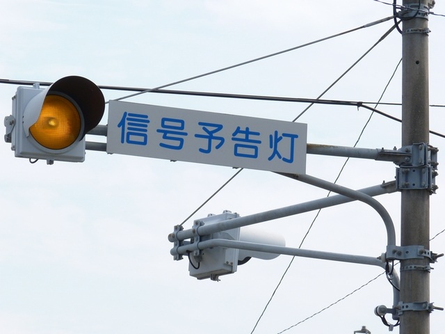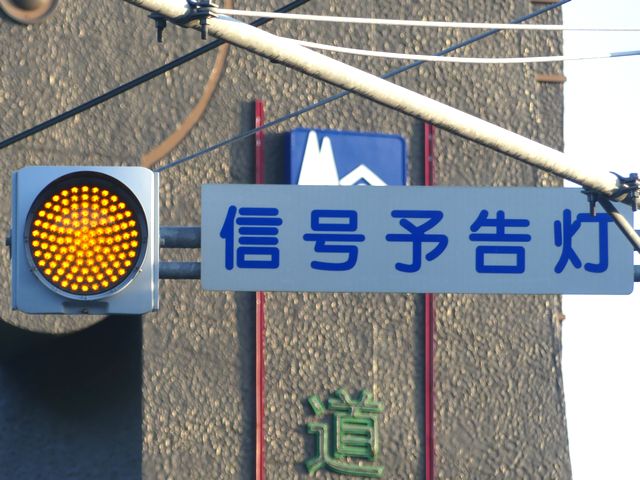 前方の信号に関わらず、常時黄点滅する「信号予告灯」です。前方に信号交差点があるのを見通せない場合に設置されます。
