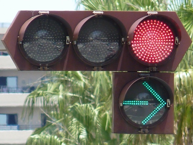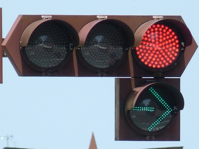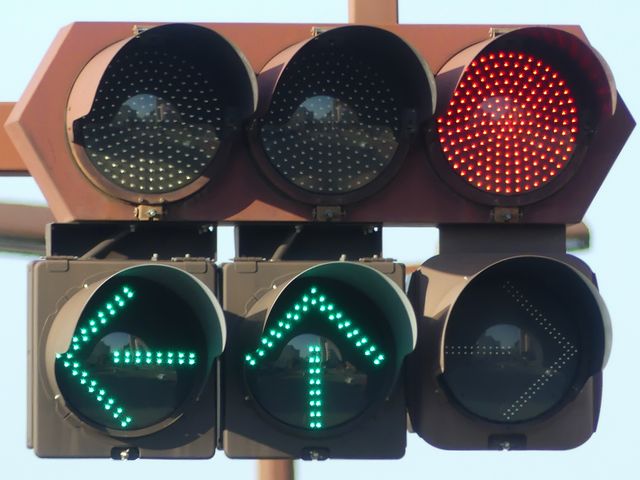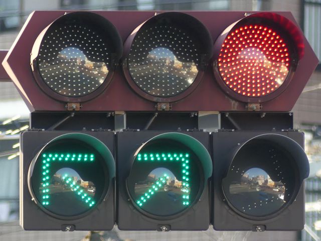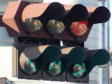 一旦右折矢印灯器が追加された後、右折分離式信号に信号サイクルが変更されたため、左折・直進矢印灯器が追加されており、矢印灯器が通常灯器(左折・直進が薄型灯器、右折が厚型灯器)となっています。