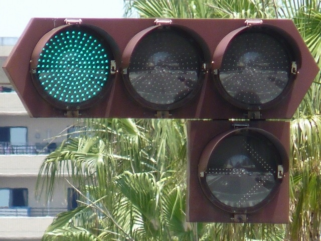 この灯器は、灯火部分を素子型LED式(中心の外側6角形)に交換しています。