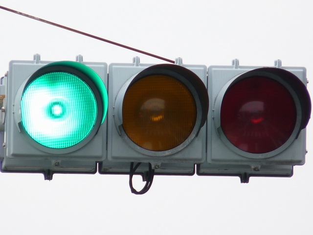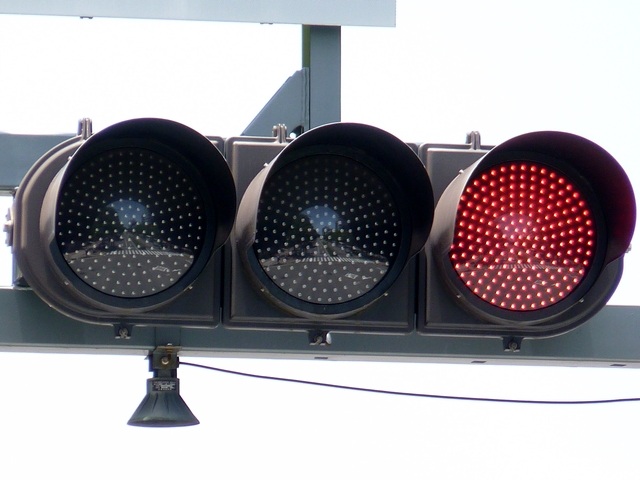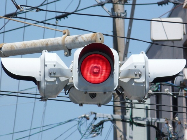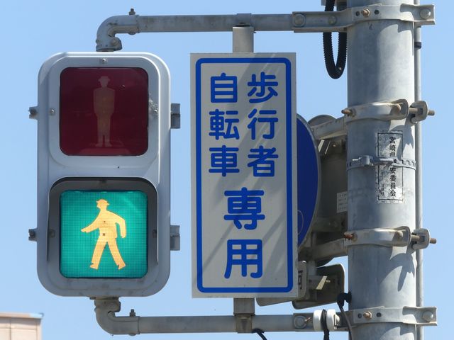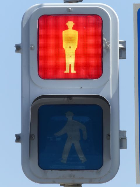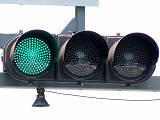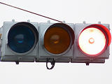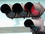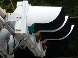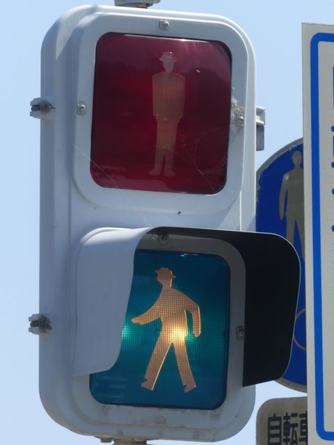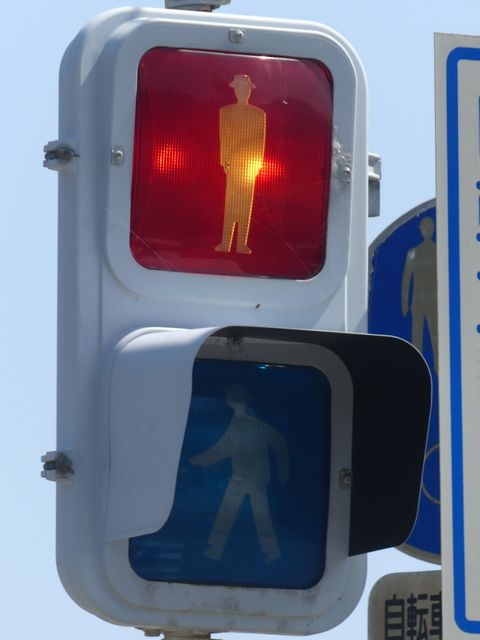| 外側丸フードの信号電材製歩行者用灯器 |