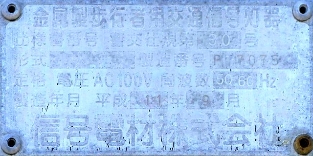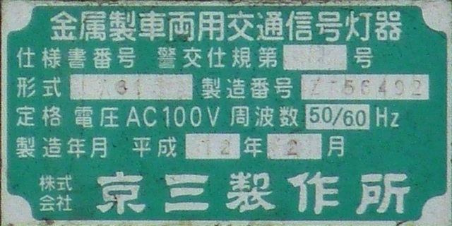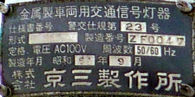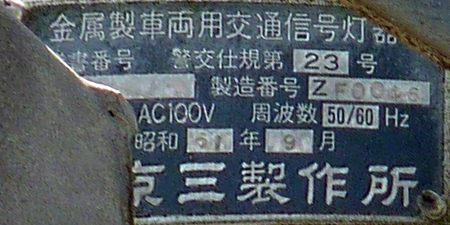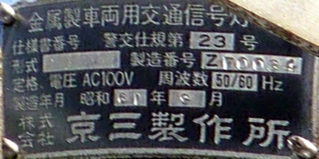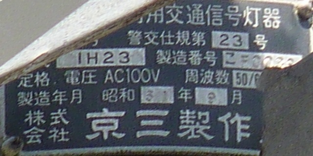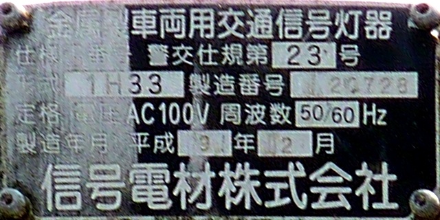 銘板の形式欄は、1方向のみなぜか「1H23」(1面・横型・直径250oレンズ・3位式)となっていますが、ほかの3方向は記載がありません。 |