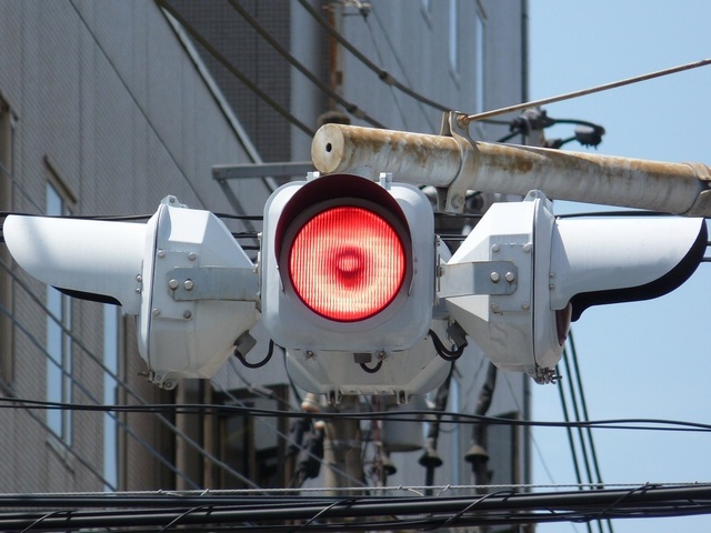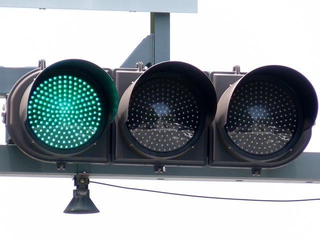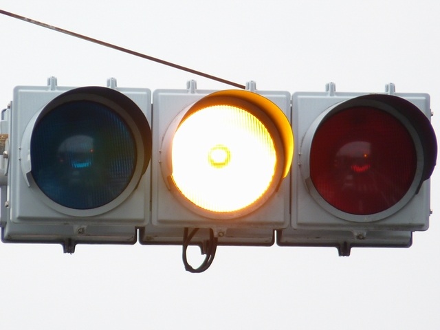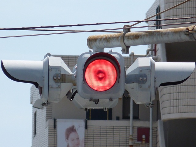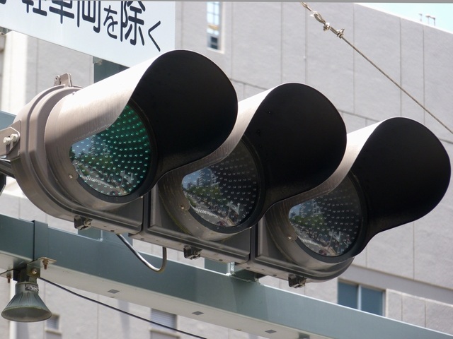 この交差点に1台設置されていますが、残念ながら特徴的なフードが1枚欠損しています。 |
