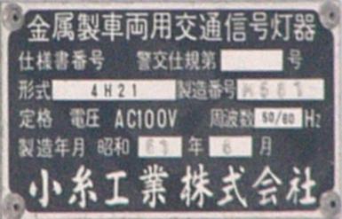 星和電機製の車両用灯器と同じ形の灯器を使用したブリンカーライトですが、銘板はありません。