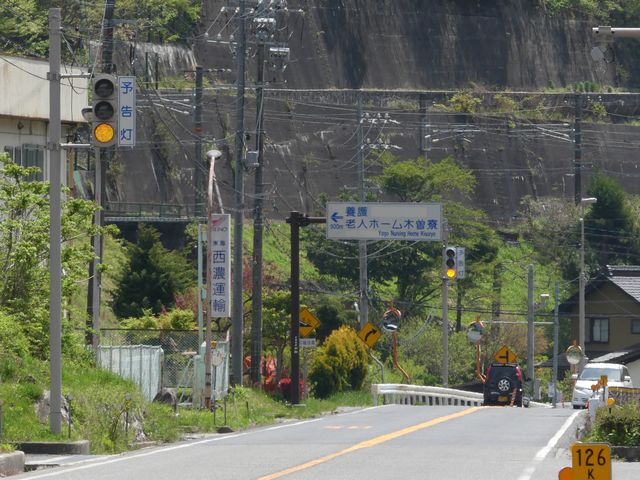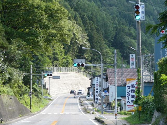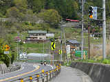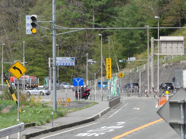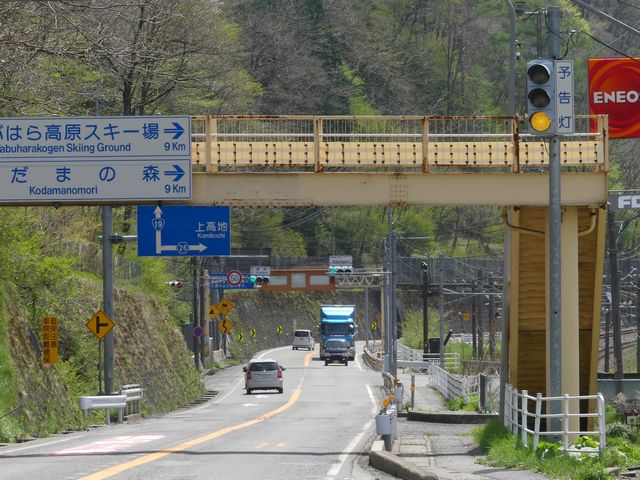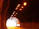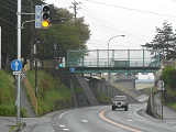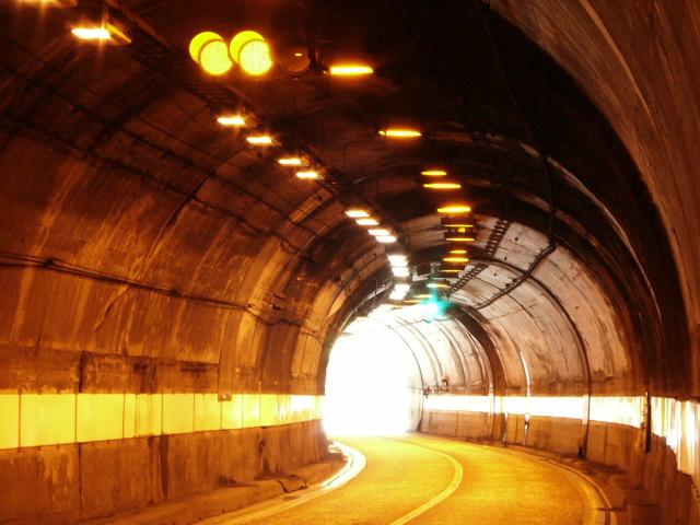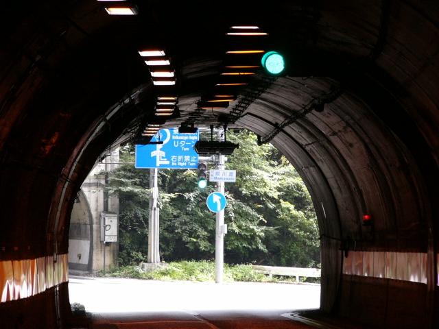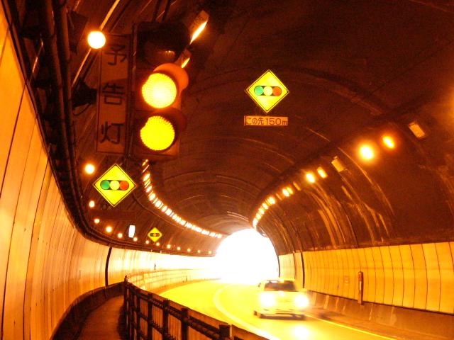 狭いトンネル内でスペースがないため、横型灯器が使用されています。灯器の上に「予告灯」の標示板がありますがほぼ見えません。(実際、私はクルマで通っても歩いて通っても標示板に気付きませんでした。)