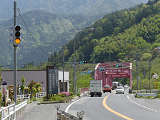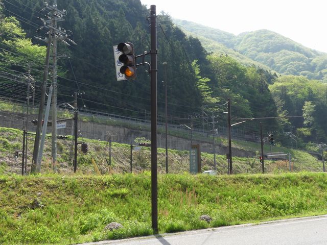 狭いトンネル内でスペースがないため、横型灯器が使用されています。なお、「予告灯」標示板がないため、これではただの信号機です。