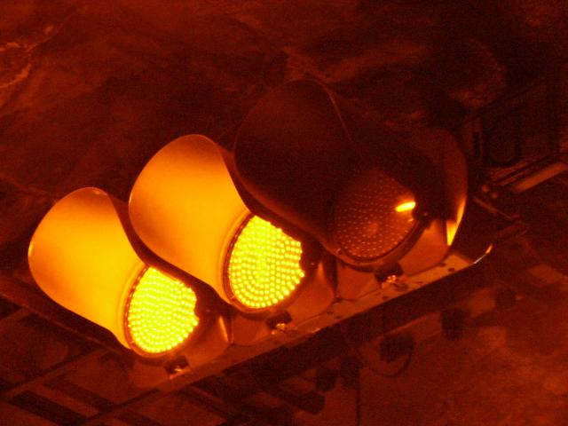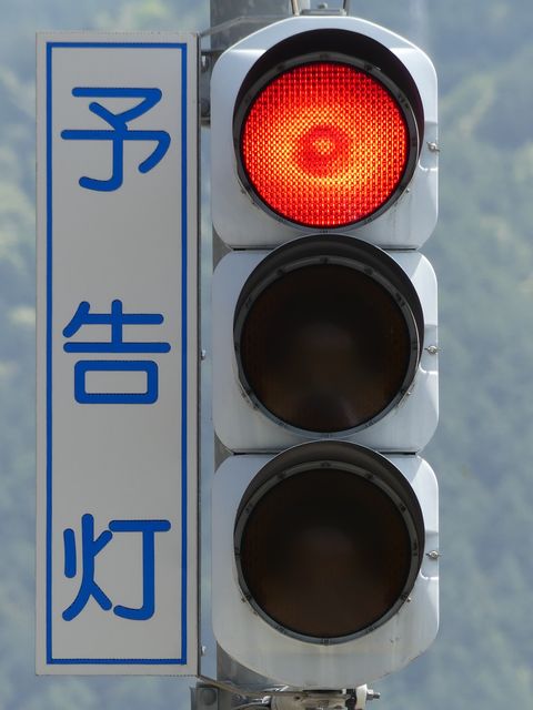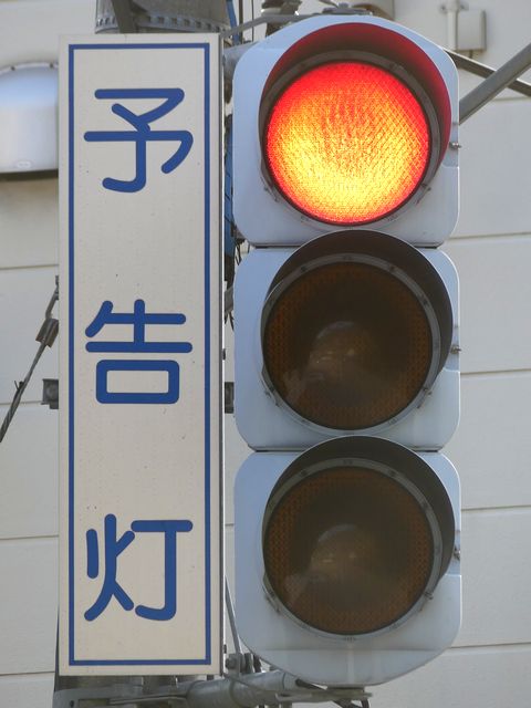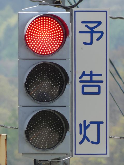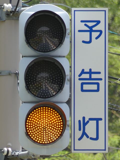 赤・黄・黄配列の「予告灯」が連続で設置されています。