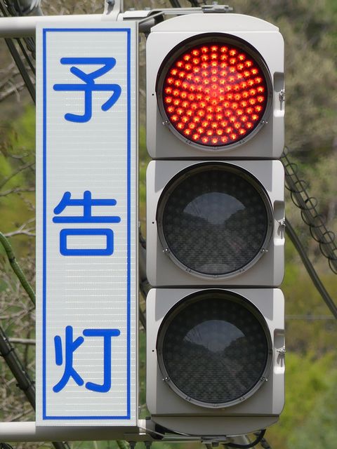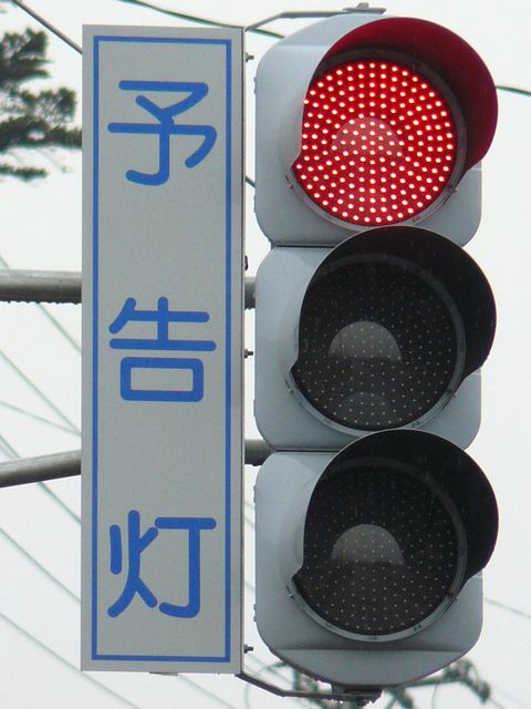 長野県では3色灯器で赤のみLED式になっているものが一時期設置されており、黄・黄・赤配列の「予告灯」でも同様に赤のみLED式となっています。