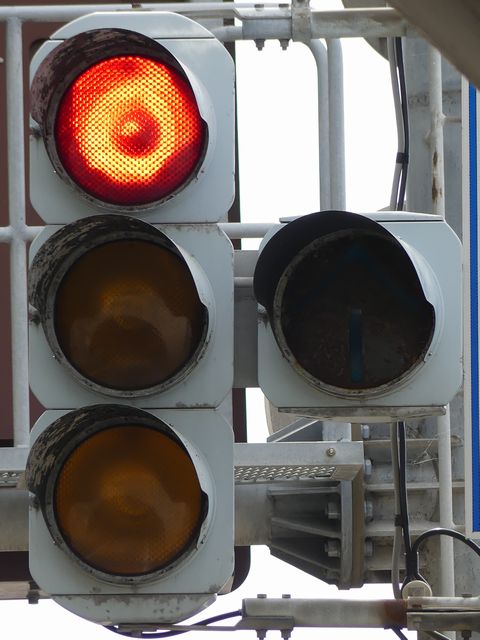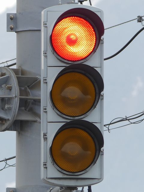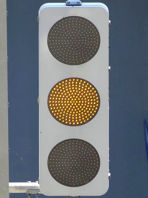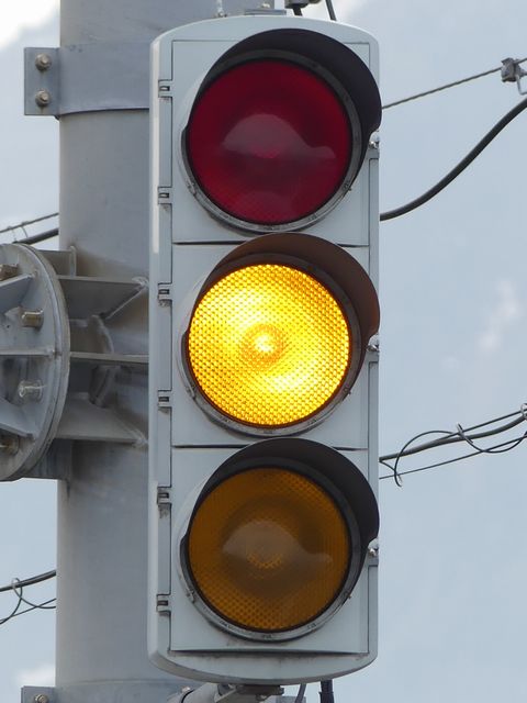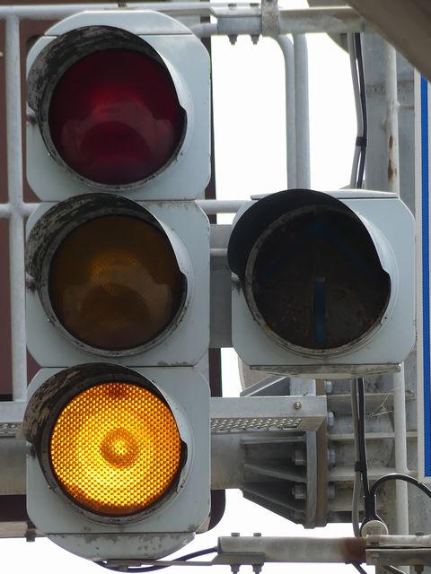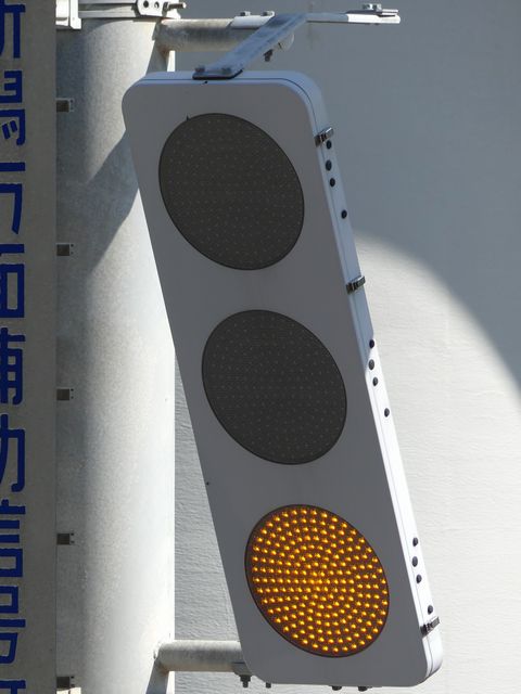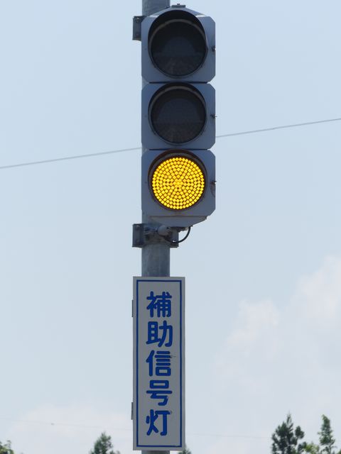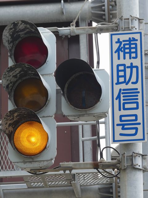 黄・黄・赤の「補助信号」に直進矢印灯器が併設されています。撮影時は矢印が点灯しませんでした。