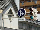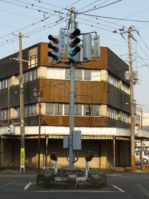 上越市などでは「雁木」が数多く残っており、信号柱はそれを避けるように屈折して設置されています。