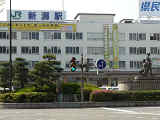 低いデザインアームです。駅前の景観に配慮したためだと思われます。