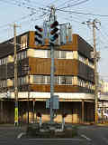 交差点中央の信号柱に抱え込み型で全方向の車両用灯器が設置されています。