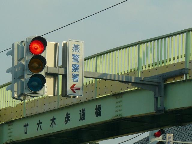 歩道橋から垂直にアームを伸ばして設置しています。