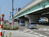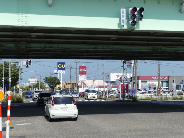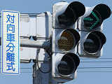 バイパスと工業団地をつなぐ道路の2交差点で導入されたムーブメント信号制御です。車両用灯器に併設された標示板は「対向車分離式」となっています。主道路・従道路ともムーブメント信号制御となっています。なお、この交差点は主道路・従道路とも左折車線は交差点から分離されており、左折車は信号の対象となっていません。