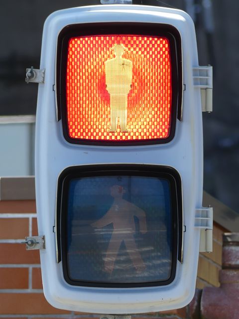 煉瓦レンズの樹脂製歩行者用灯器は、愛知県で見かけますが、愛知県では愛知型フードが使用されており、通常型フードのものはここ以外では見られないようです。