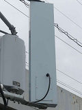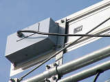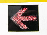 歩行者用の押ボタン箱と「シルバー」用の白色押ボタン箱が一体になっています。「シルバー」用の側面には矢印の形にLEDが埋め込まれており、「シルバー」用の表示窓の「おしてください」の表示と交互に点滅します。