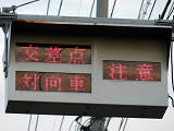 高架鉄道の橋脚があり、右折車から横断歩道が見通せないため、「横断者に注意」と表示するLED式標示板が設置されています。なお、歩車分離の信号サイクルとなっています。