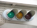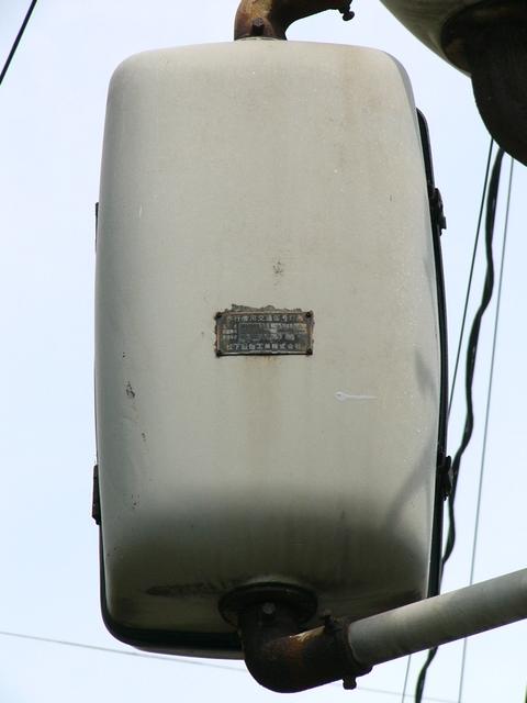 京三製作所製の直径300mmレンズ灯器です。正面から見たとき外側に幅があり、背面が膨らんでいるのが特徴です。背面に「KYOSAN」のロゴがあります。現在は撤去されています。