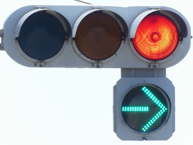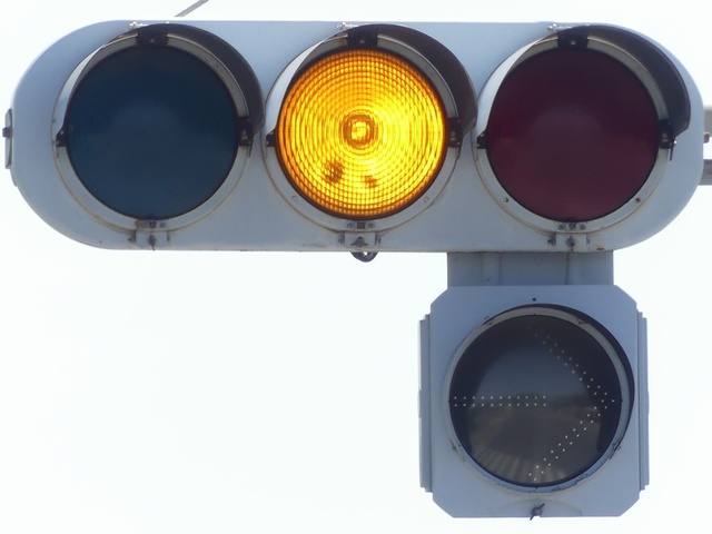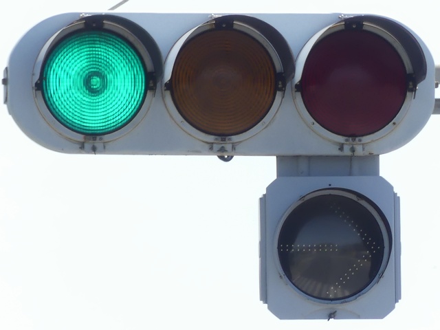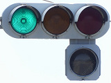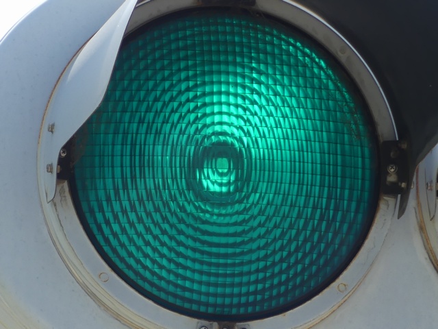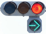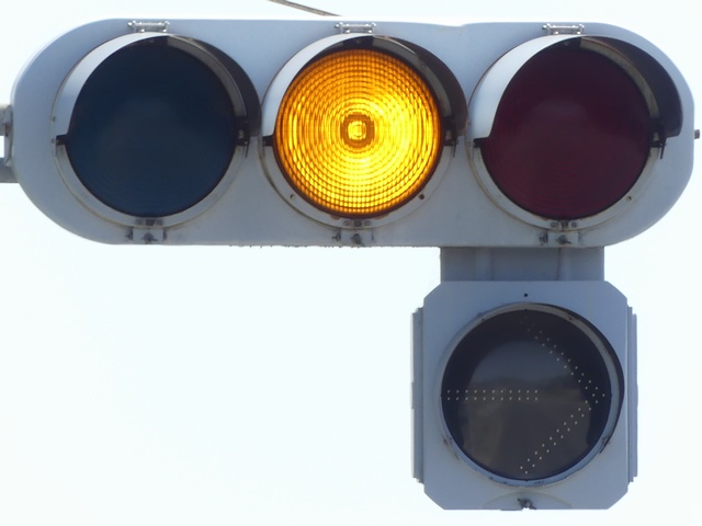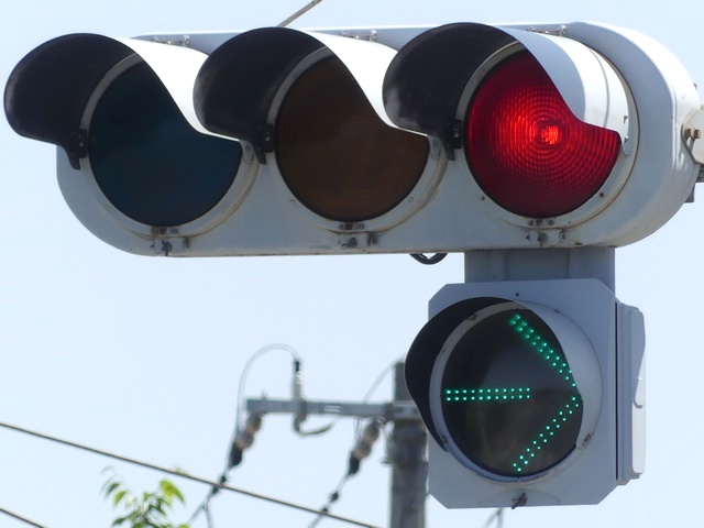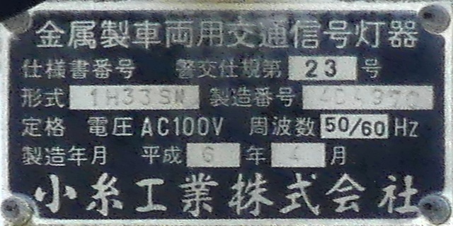 西日対策のため同心円状模様のレンズを使用した灯器です。網目模様レンズと同心円状模様レンズの二重構造になっているようです。