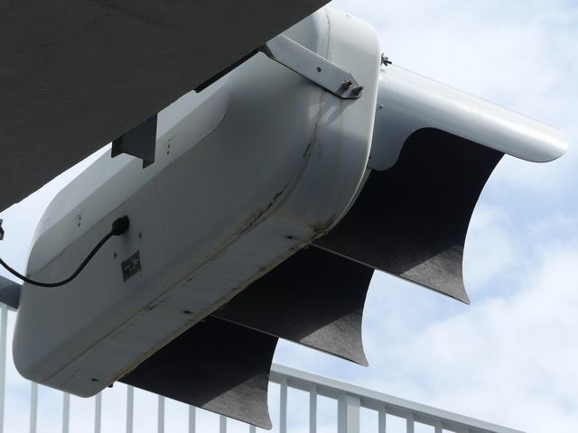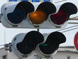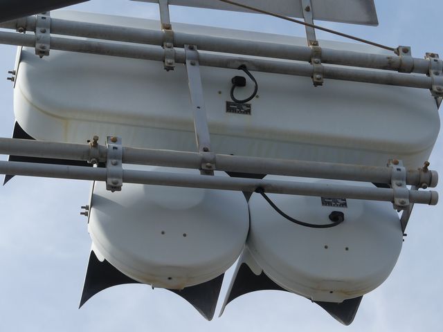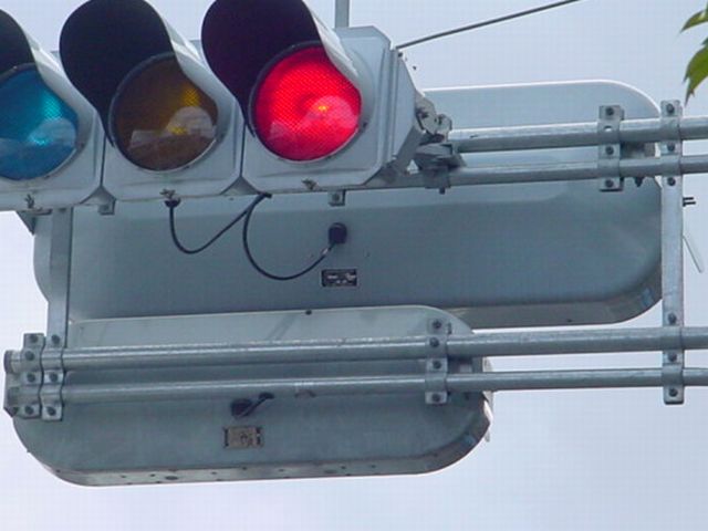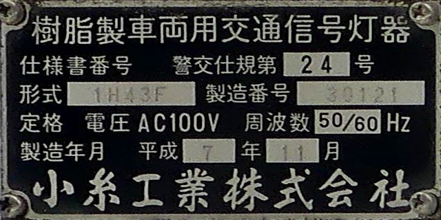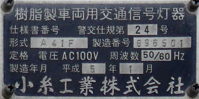 なお、この3色灯器は、青が点灯しませんが青のみ左右制限フードを装着しています。