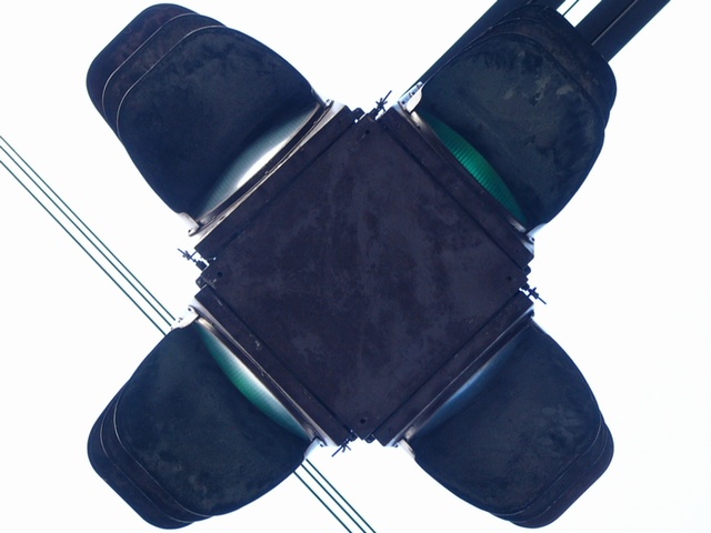 その後交換され、交差点中央に4方向の薄型灯器を集約し懸垂型で設置する方法に変更されました。