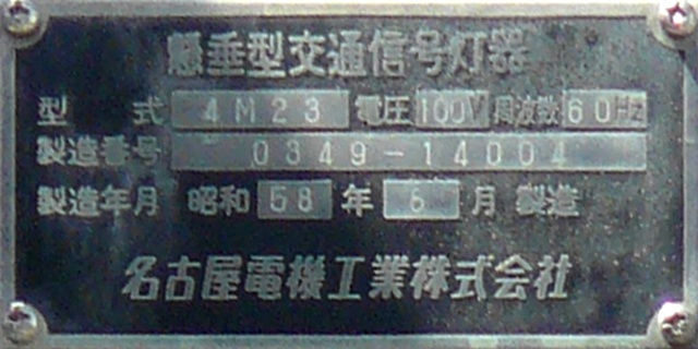 懸垂型交通信号灯器 型式:4M23 製造番号:0349-14004 昭和58年6月製造 名古屋電機工業