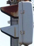 この交差点では、主道路横断用として4台設置されています。うち1台は上部のエルボー金具が小糸製のものに交換されています。