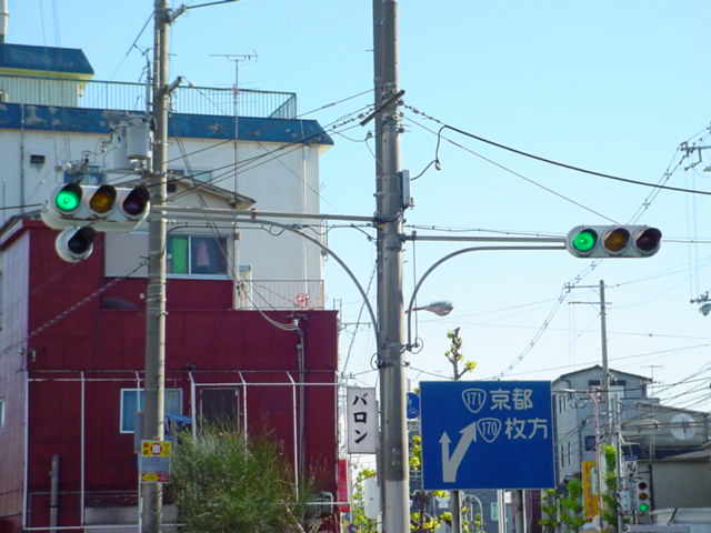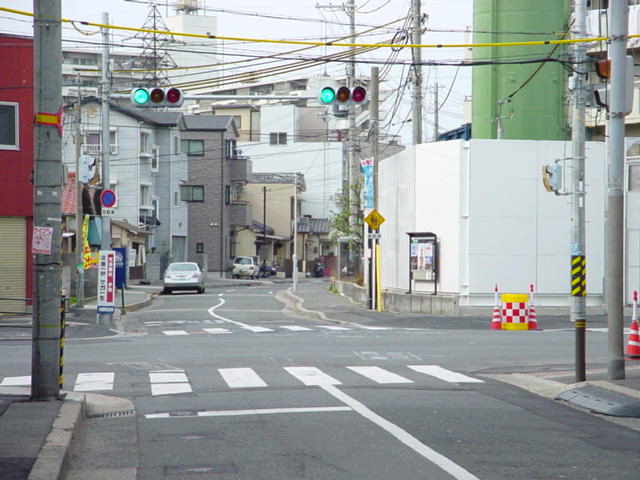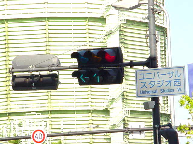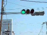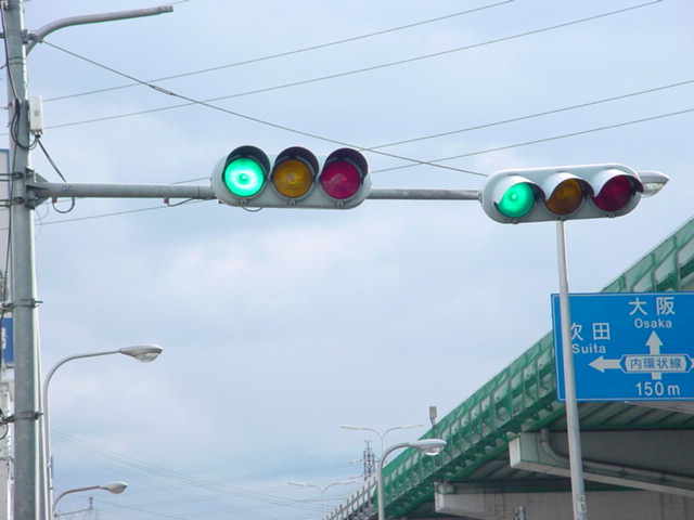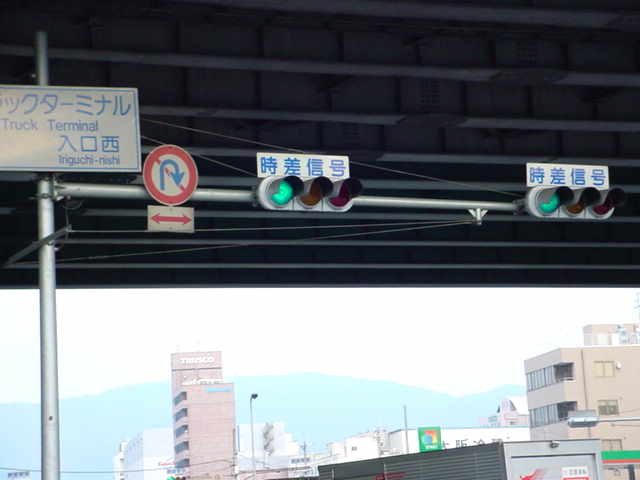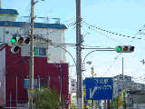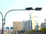 ![]() 柱の両側に灯器を設置することで、信号を強調、あるいは見やすくしています。