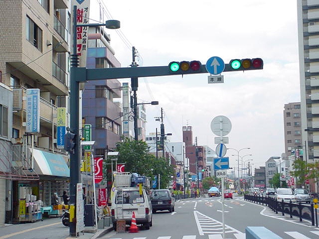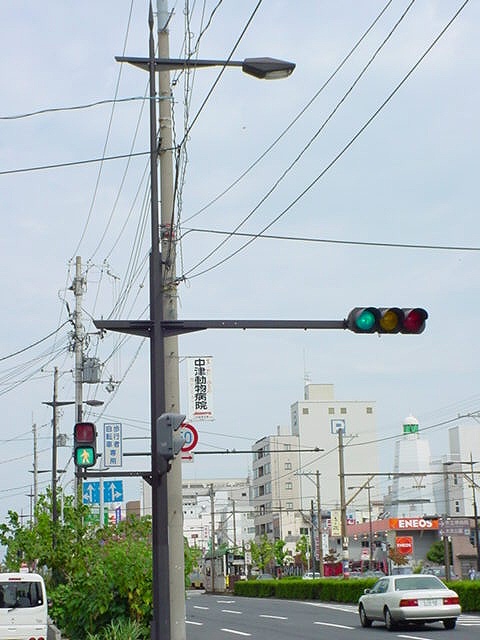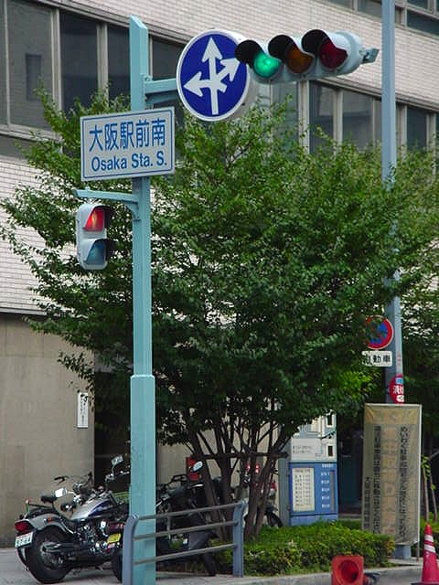 | 御堂筋「大江橋北詰」交差点の車両用灯器 |
