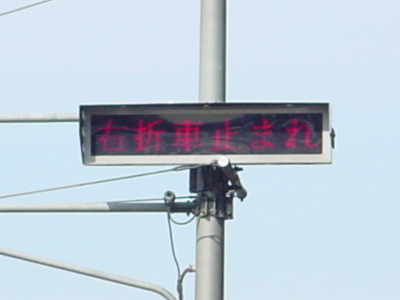 黄色塗装の角型灯器を使用したタイプです。現在は、LED式標示板に交換されています。連続交差点を1つの交差点と勘違いして信号無視するのを防ぐため、連続交差点奥側の交差点に設置されていました。