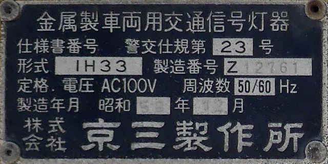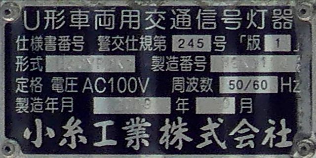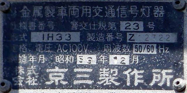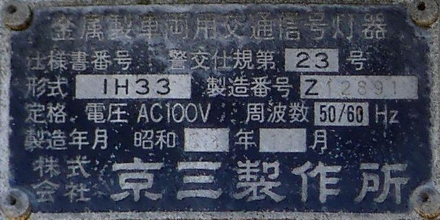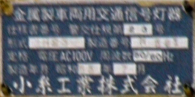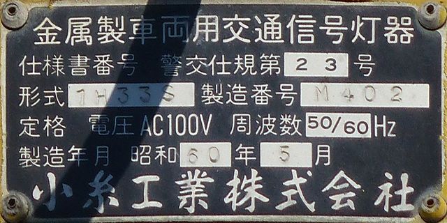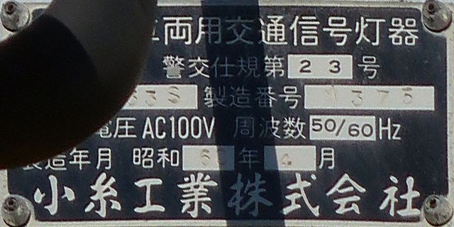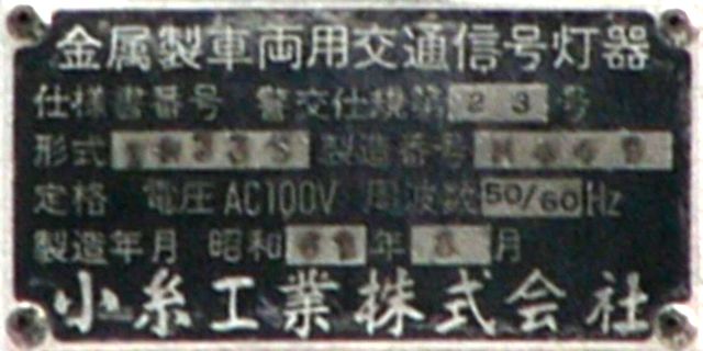 こちらは、通常塗装の小糸工業製丸型灯器を使用したタイプです。現在は、LED式標示板に交換されています。連続交差点を1つの交差点と勘違いして信号無視するのを防ぐため、連続交差点奥側の交差点に設置されていました。