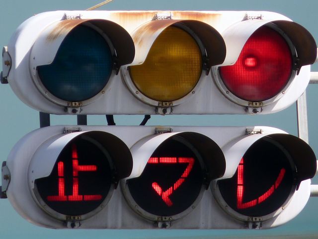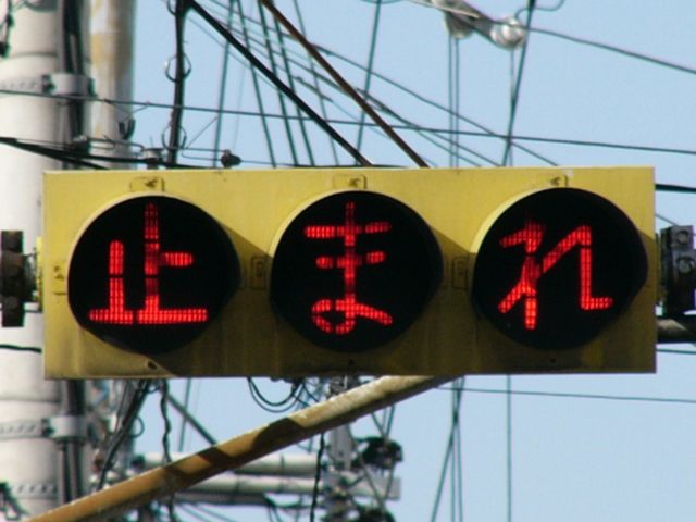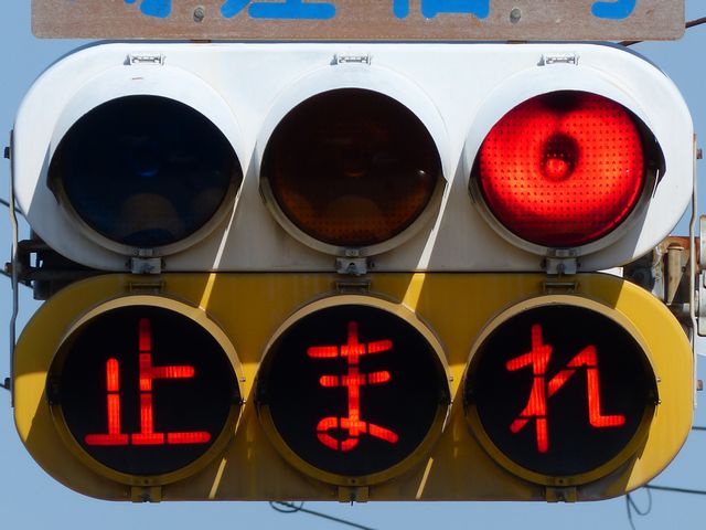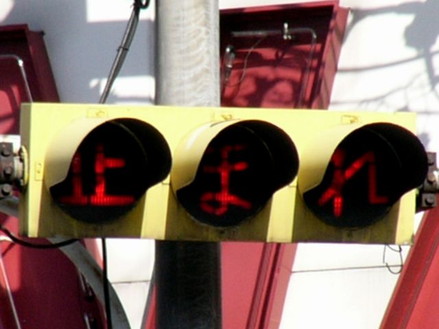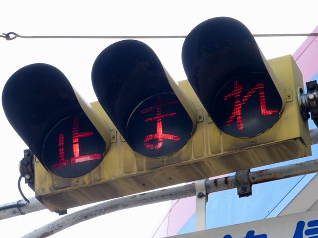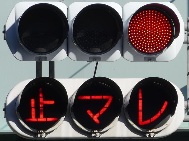 大きなものもあります。わざわざ「赤信号止まれ」と表示しています。