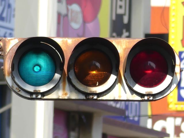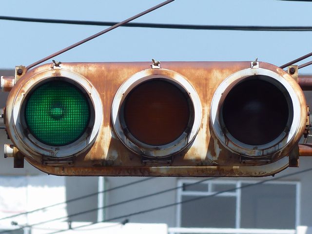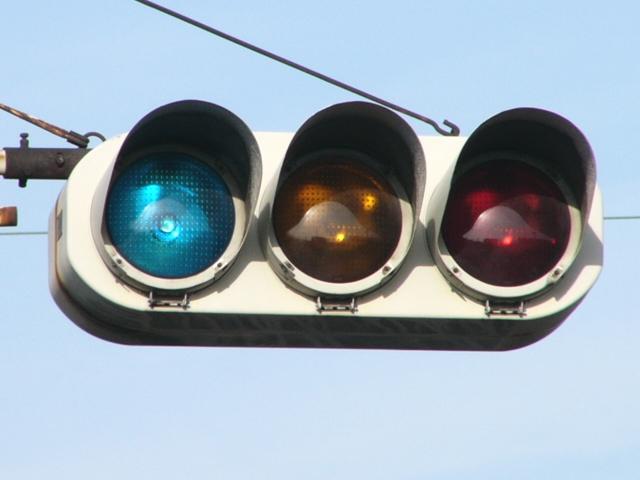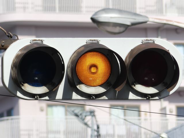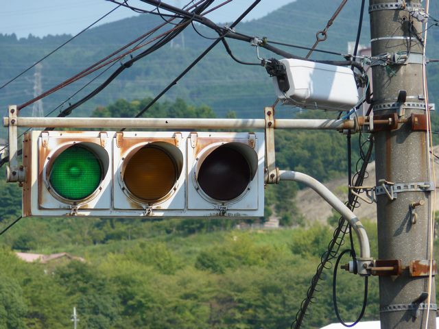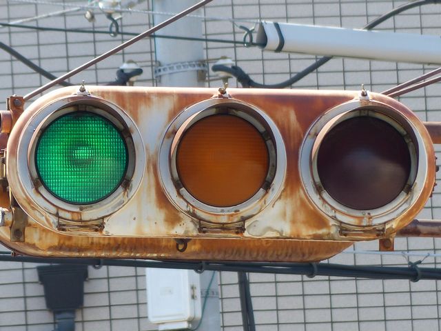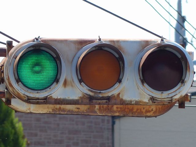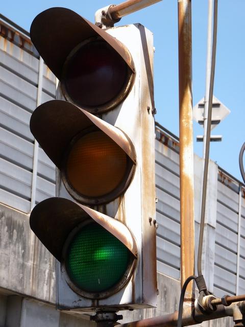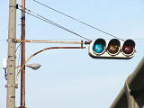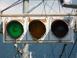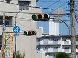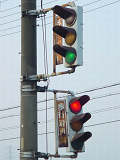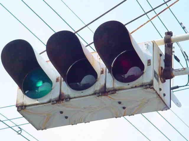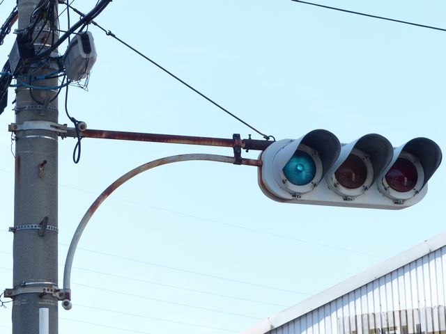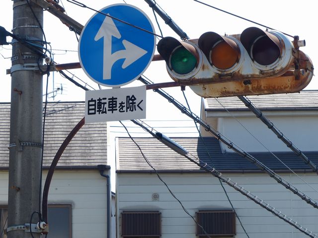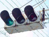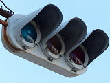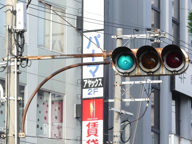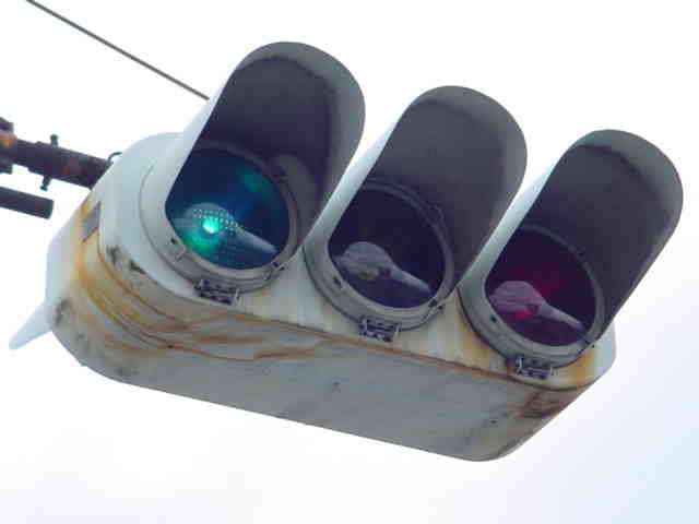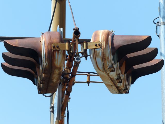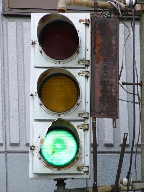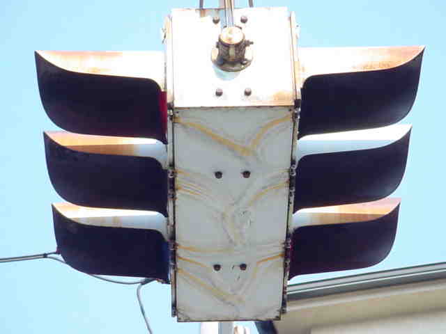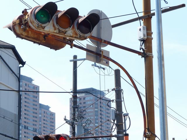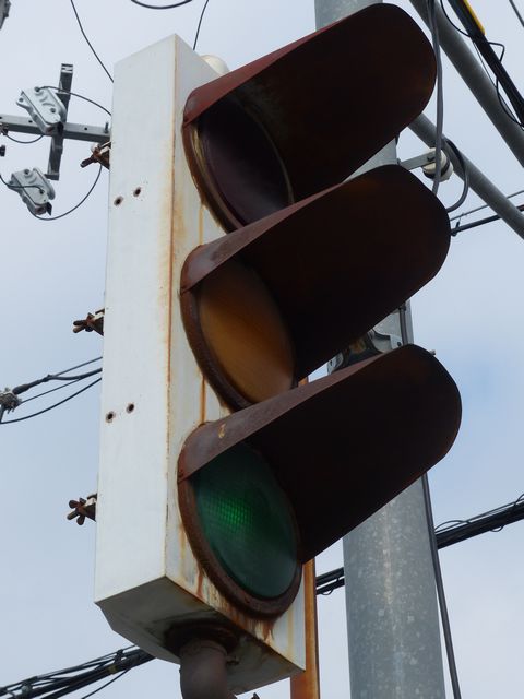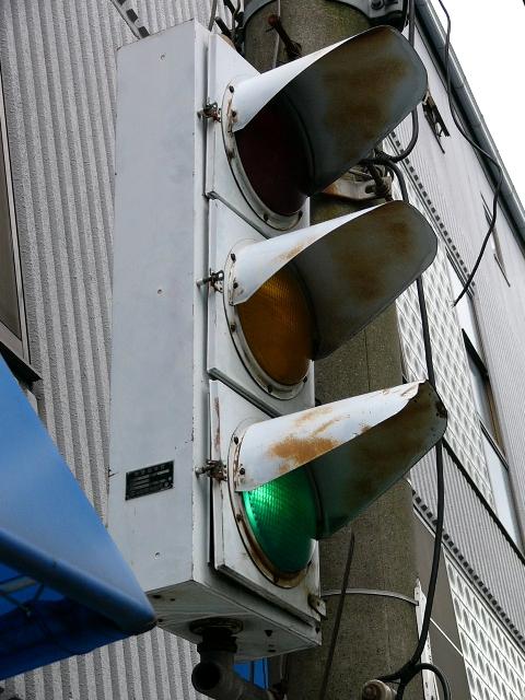 | 京三製作所製初期の丸型灯器(幅広アーム) |