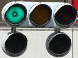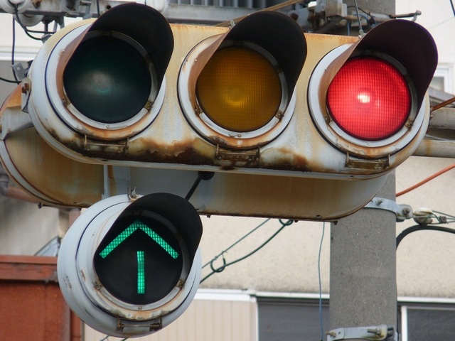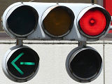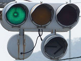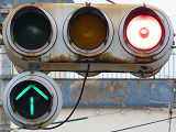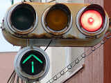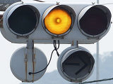 京三製初期の丸型灯器の直径250oレンズの矢印灯器です。