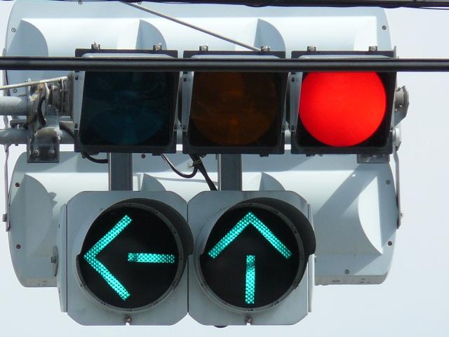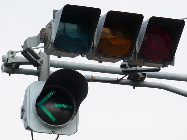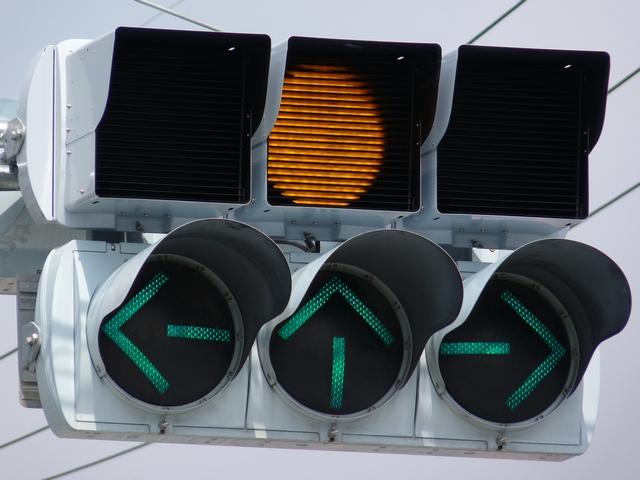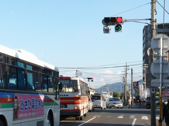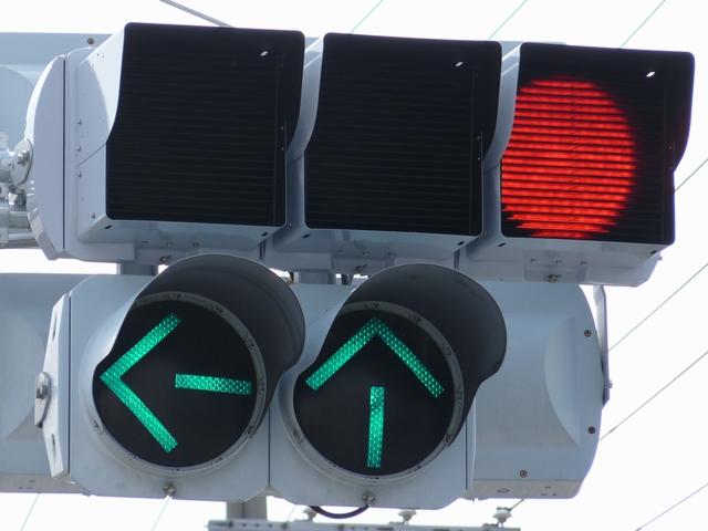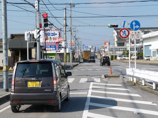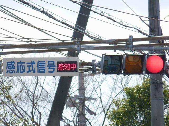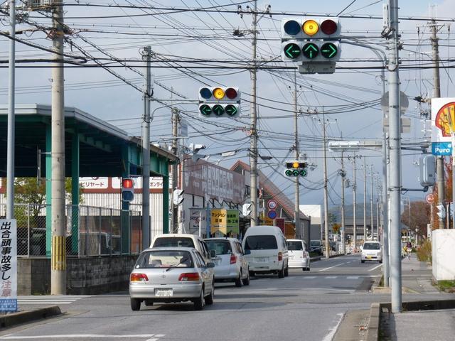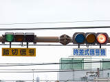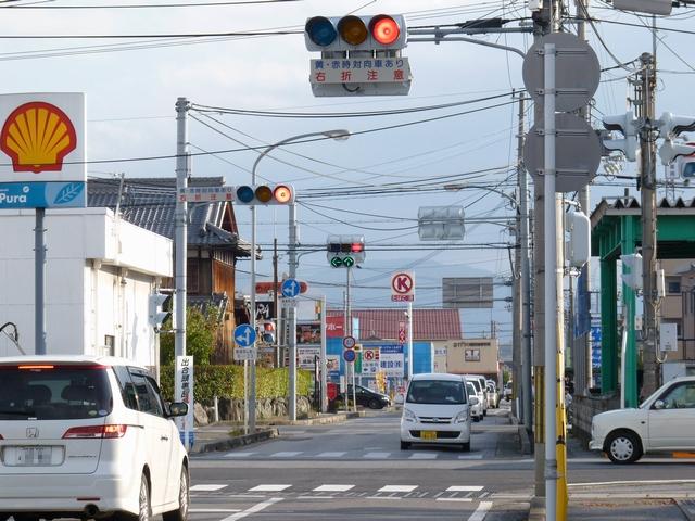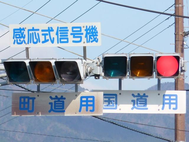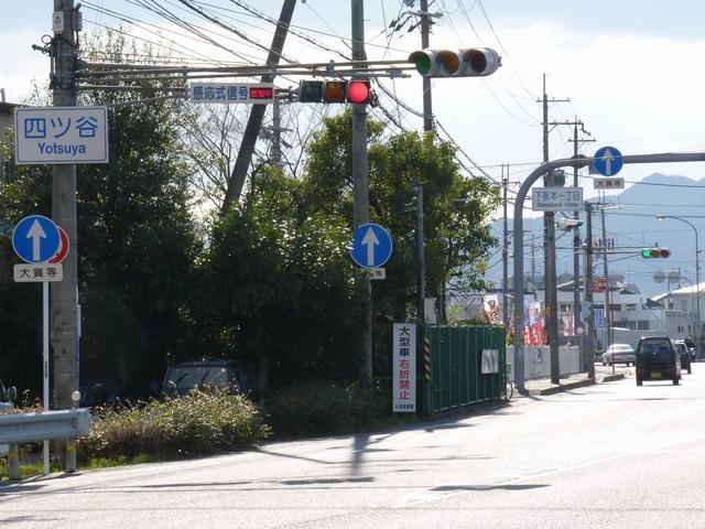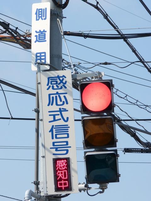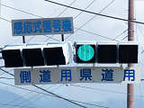 この交差点の偏光灯器には「町道用」「国道用」の標示板が設置されていましたが、当該道路は「市道(合併により志賀町道から大津市道に)」と「県道(R161から滋賀r558に移管)」となっており、いずれも存在しない道路に対する信号となってしまっていました。平成22年2月頃に灯器が交換されましたが、標示板はそのままでした。 平成25年度工事でようやく標示板が交換され、主道路側は「県道用」、従道路側は「側道用」となりました。しかし、主道路と従道路は全く別の道路であり、従道路を「側道」と呼ぶのは不適当ではないかと思います。